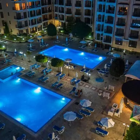 Представящ тераса и външен басейн, хотел Bendita Mare Apartment Golden Sands се намира на около 5 минути път с автомобил от Акваполис. Този апартхотел включва също безплатен частен паркинг.
